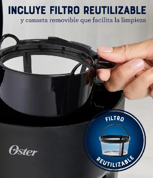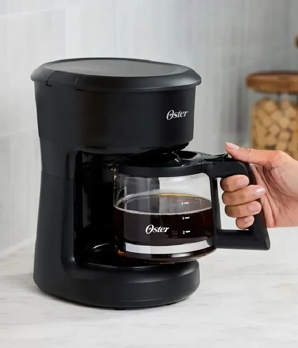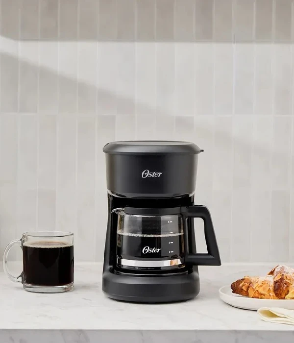 Comienza tus mañanas con la cafetera de 5 tazas Oster, ideal para quienes disfrutan de varias tazas de café durante el día o quieren compartir. Usarla es muy fácil: simplemente agrega agua, café y presiona el botón de encendido.
