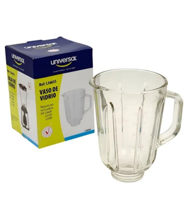 Vaso de vidrio universal 366 para licuadora, resistente y de fácil limpieza. Compatible con modelos estándar, ideal para reemplazo y mantener el rendimiento de tu licuadora como nuevo.