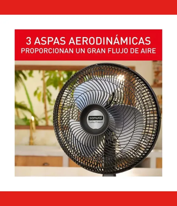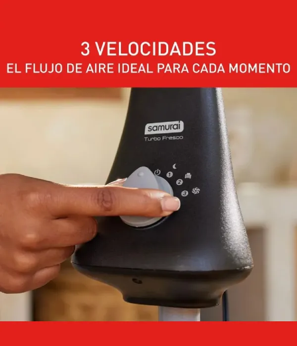 ¡Prepárate para disfrutar de una brisa poderosa y refrescante con el nuevo Ventilador SAMURAI Turbo Fresco! Este ventilador está diseñado para ofrecer un fuerte flujo de aire, ideal para mantenerte fresco y cómodo en los días calurosos. Con sus 3 velocidades, puedes ajustar el flujo de aire según tus preferencias, mientras que su bajo nivel de ruido garantiza mayor comfort. Con una potencia de 70 Watts. Disfruta de una gran frescura superior y durabilidad prolongada con el nuevo Turbo Fresco, el cual cuenta con 15 años de reparabilidad donde los 2 primeros son la garantía.